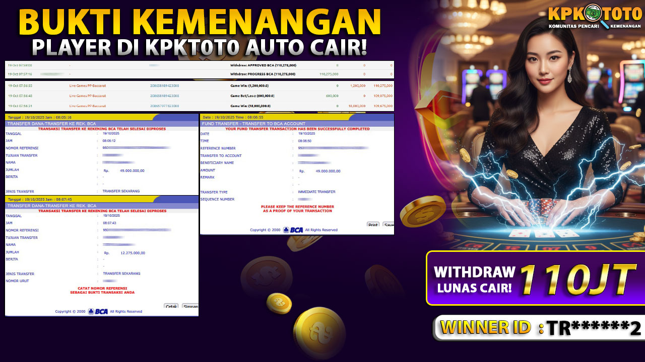 Bandar togel KPKTOTO merupakan bandar togel dan slot online yang membayar semua kemenangan member hingga lunas. Setiap pembayaran pada situs kami dilakukan dengan cara transfer ke rekening tujuan yang sudah di daftarkan pada situs togel online kami, Pembayaran hanya dapat di proses jika rekening yang di daftarkan telah valid dan dapat di transfer. Semua kemenangan member yang mendapatkan hadiah jackpot terbesar akan kami posting agar semua pemain dapat melihat bandar situs terpercaya KPKTOTO ini membayar semua kemenangan member hingga lunas. Setiap postingan yang kami posting akan kami lakukan sensor pada nomor rekening 4 digit dan nama rekening untuk menjaga privasi dan kerahasiaan member. Postingan Jackpot yang kami posting agar member atau pemain yang belum pernah bermain bisa melihat bandar togel Bukan Kaleng Kaleng Seperti KPKTOTO ini, Semua postingan jackpot yang kami posting dapat di lihat data keasliannya melalui nomor reff yang di tunjukan pada bank atau mbanking saat kita melakukan transfer.
