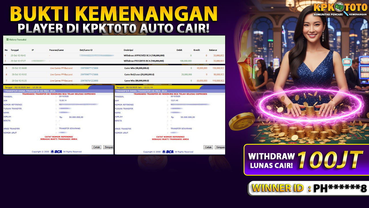 Bandar togel KPKTOTO merupakan bandar togel dan slot online yang membayar semua kemenangan member hingga lunas. Setiap pembayaran pada situs kami dilakukan dengan cara transfer ke rekening tujuan yang sudah di daftarkan pada situs togel online kami, Pembayaran hanya dapat di proses jika rekening yang di daftarkan telah valid dan dapat di transfer. Semua kemenangan member yang mendapatkan hadiah jackpot terbesar akan kami posting agar semua pemain dapat melihat bandar situs terpercaya KPKTOTO ini membayar semua kemenangan member hingga lunas. Setiap postingan yang kami posting akan kami lakukan sensor pada nomor rekening 4 digit dan nama rekening untuk menjaga privasi dan kerahasiaan member. Postingan Jackpot yang kami posting agar member atau pemain yang belum pernah bermain bisa melihat bandar togel Bukan Kaleng Kaleng Seperti KPKTOTO ini, Semua postingan jackpot yang kami posting dapat di lihat data keasliannya melalui nomor reff yang di tunjukan pada bank atau mbanking saat kita melakukan transfer.