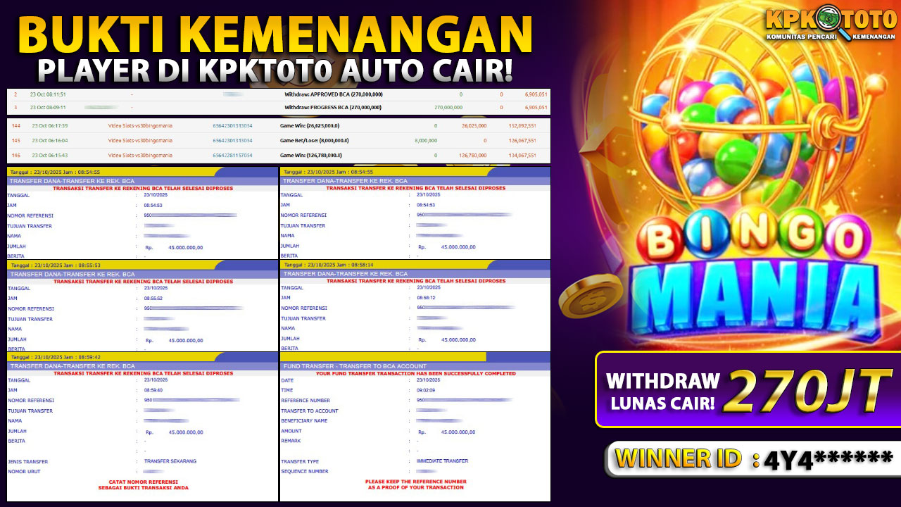 Bandar togel KPKTOTO merupakan bandar togel dan slot online yang membayar semua kemenangan member hingga lunas. Setiap pembayaran pada situs kami dilakukan dengan cara transfer ke rekening tujuan yang sudah di daftarkan pada situs togel online kami, Pembayaran hanya dapat di proses jika rekening yang di daftarkan telah valid dan dapat di transfer. Semua kemenangan member yang mendapatkan hadiah jackpot terbesar akan kami posting agar semua pemain dapat melihat bandar situs terpercaya KPKTOTO ini membayar semua kemenangan member hingga lunas. Setiap postingan yang kami posting akan kami lakukan sensor pada nomor rekening 4 digit dan nama rekening untuk menjaga privasi dan kerahasiaan member. Postingan Jackpot yang kami posting agar member atau pemain yang belum pernah bermain bisa melihat bandar togel Bukan Kaleng Kaleng Seperti KPKTOTO ini, Semua postingan jackpot yang kami posting dapat di lihat data keasliannya melalui nomor reff yang di tunjukan pada bank atau mbanking saat kita melakukan transfer.